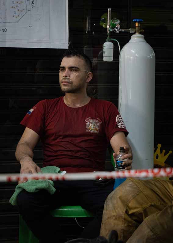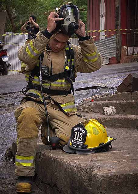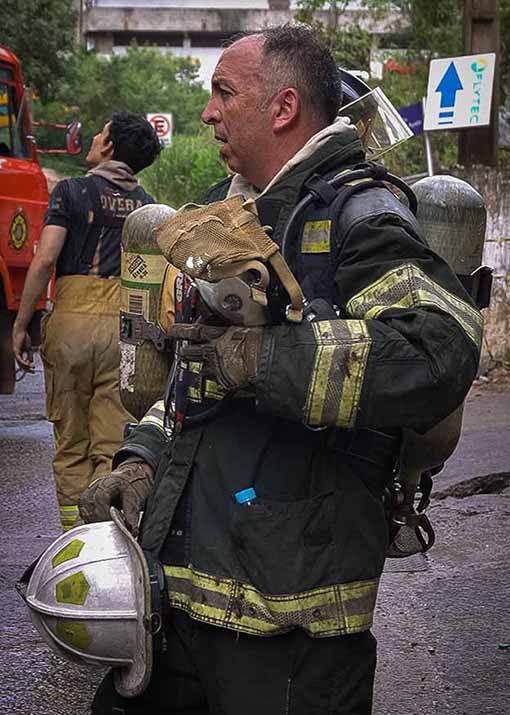 Ellos están en la línea de fuego, agotados físicamente luego de extenuantes horas de combate contra la voracidad de las llamas, rostros cansados, cuerpos exhaustos, usan hasta el último resquicio de fuerza, tumbados en el piso recuperan el aliento para volver a entrar a las fauces del fuego, tienen una misión, salvar vidas y proteger los bienes de las personas, es el lado humano de estos héroes anónimos, gladiadores incansables, que nos enseñan que el sacrificio, el valor de la solidaridad y la abnegación marcan la diferencia.