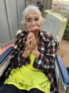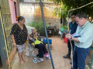 Conocimos a la señora Mariana Noguera, de 85 años de edad, moradora del barrio Ciudad Nueva de Ciudad del Este, quien a pesar de su frágil estado de salud recibió a la comitiva con alegría, en presencia de su hija Rogelia, que la cuida con amor y paciencia.