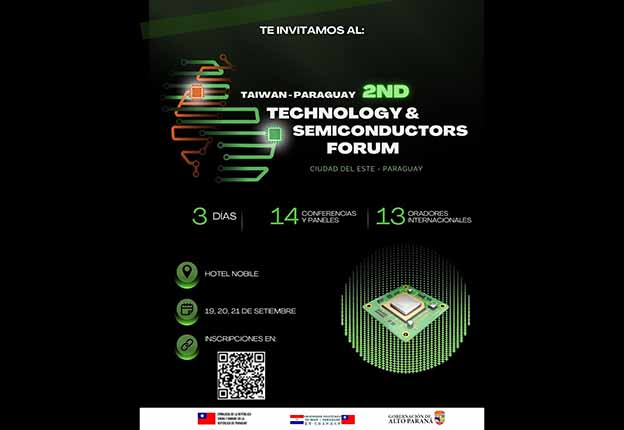 Con el apoyo de la Gobernación del Alto Paraná, la Universidad Nacional del Este, la Universidad Politécnica Taiwán-Paraguay y la Embajada de la República de China en Taiwán, se realizará el Technology & Semiconductors Forum – Taiwán–Paraguay que reunirá a los más destacados referentes internacionales de la industria tecnológica, los días 19, 20 y 21 de septiembre en el Hotel Nobile de Ciudad del Este.