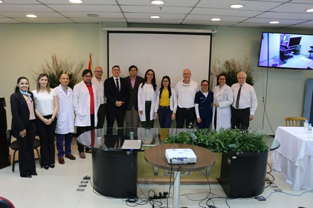 El Dr. Luis Ernesto Álvarez, médico cirujano y especialista colombiano en endoscopia con 20 años de experiencia en implantes de catéteres para diálisis peritoneal, brindó una charla magistral sobre las ventajas de esta técnica, para luego realizar un taller práctico con transmisión por señal de video desde el quirófano del mecanismo del procedimiento en pacientes con insuficiencia renal, con apoyo del Dr. Emilio Cabrera, servicio de Cirugía Mínima Invasiva del Hospital Central del IPS y el Dr. Richard Ayres, jefe del servicio de Quirófano de la Fundación Tesãi.