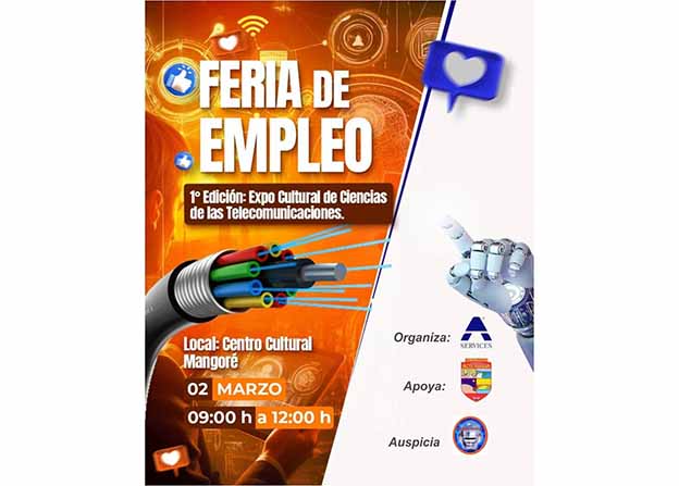 “Esta Feria de Empleo es organizada por la empresa All Services Paraguay, en colaboración con la gobernación de Alto Paraná, el CAES Centro de Apoyo a Emprendedores (CAES) y auspiciada por el Instituto Cybertronic”, señaló el gerente general de la empresa All Services Paraguay, Aldo Segovia Ortiz, organizador del evento. El mismo indicó que con el apoyo de la Gobernación y el auspicio de varias empresas privadas están llevando a cabo la 1° Edición denominada “Expo Cultural de Ciencias de las Telecomunicaciones” y la Feria de Empleos. Acotó que esta iniciativa ofrece 100 vacancias laborales, para cubrir los siguientes cargos: en el área de Telemarketing, Fibra Óptica, Data Centers, Ventas, Call Center, Prompters de Inteligencia Artificial, televendedores, vendedor digital, ejecutivo corporativo.