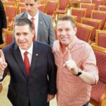 César “Landy” Torres, candidato a la Gobernación de Alto Paraná por el Partido Colorado, en compañía de Roberto González Vaesken, actual gobernador y jefe...