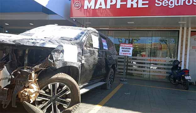 Desde hace días, el dueño de la camioneta ha estado buscando una solución con la aseguradora, pero hasta el momento no ha obtenido ninguna respuesta y lo más llamativo es que la empresa Mapfre llamó a una firma de Guaíra (Brasil) para remover el vehículo del frente de la aseguradora y depositarlo en la vereda de la Municipalidad de esta ciudad.