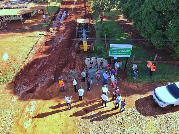 En la jornada de ayer (12), en horas de la tarde, se procedió al inicio de obra de pavimentación del camino vecinal del barrio San Miguel-Santa Bárbara, consistente en pavimento tipo empedrado. La empresa ganadora de la licitación hecha por la Itaipú Binacional ha empezado los trabajos y los vecinos del barrio se mostraron felices ya que llevan más de 70 años tragando polvo, esperando por el empedrado que finalmente se logró con gestión municipal.