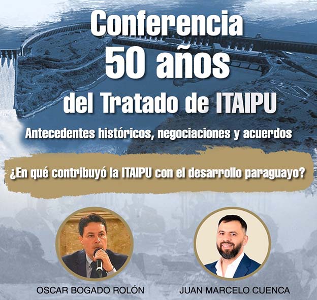 En conmemoración de los 50 años de la firma del Tratado de Itaipú, este martes, 25 de abril, se llevará a cabo la conferencia “50 años del Tratado de Itaipú. Antecedentes históricos, negociaciones y acuerdos”. El evento, abierto al público en general, es organizado por la Binacional y la Fundación Luis María Duarte, con el apoyo de la Biblioteca y Archivo Central del Congreso Nacional y el Centro de Estudiantes de Derecho de la Universidad Nacional de Asunción (UNA).