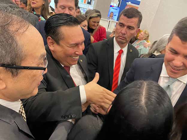 Por invitación del gobernador del Alto Paraná, César “Landy” Torres, y del asesor político Rolando Segovia, el cónsul general Camilo Chang, acompañado por la vicecónsul Rachell Yeh, participaron en la VII sesión del CEMAP (Cámara de Empresas Maquiladoras del Paraguay), llevada a cabo el día 4 de septiembre en el Lago Shopping de Ciudad del Este.