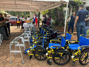 La donación, que incluye 40 sillas de ruedas para adultos, 6 sillas de ruedas infantiles, 6 andadores, 6 bastones y 6 adaptadores para baño, se realizó en un ambiente de solidaridad y compromiso. Estos artículos serán distribuidos a quienes más los necesitan, brindándoles mayor movilidad y autonomía, y mejorando significativamente sus condiciones de vida.