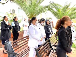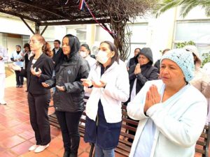 Funcionarios, médicos, enfermeras y personal de servicios tercerizados de la Fundación Tesãi celebraron el “Día de la Virgen Rosa Mística” en el Oratorio del Hospital del Área 2, pidiendo por la salud de los enfermos, la paz, unidad y el amor de las familias.