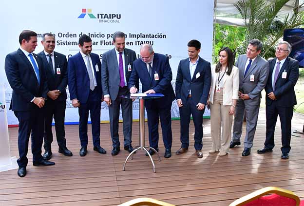 Con la firma de la orden de inicio se procederá a la implantación de la planta solar flotante de 1.000 kWp de potencia en el embalse de la Central Hidroeléctrica Itaipú (CHI) que, de esta manera, pasará a ser una usina de generación múltiple.