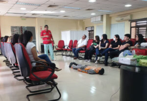 El curso fue impartido por el Lic. Eliceo Cabrera, responsable del Servicio de Urgencias Extrahospitalaria, con el soporte teórico- práctico de otros integrantes de la Comisión Interna de Prevención de Accidentes (CIPA).