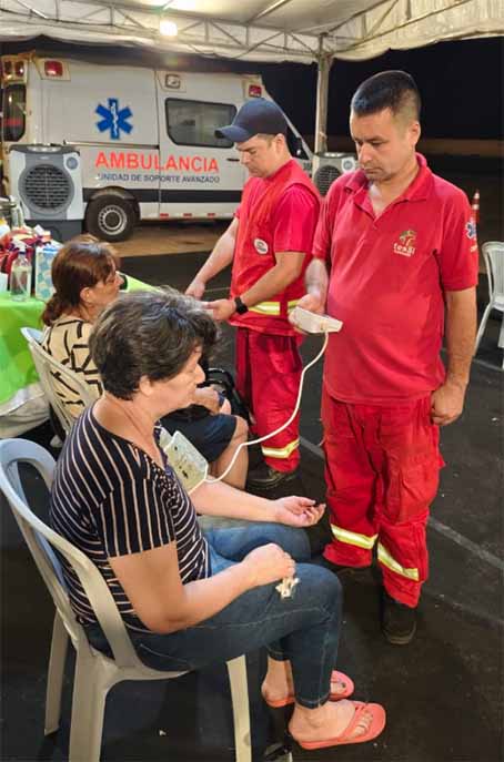 “Estamos felices de haber servido a los feligreses y familias que visitaron la Villa Serrana. Hicimos primeros auxilios, hidratación, soporte de asistencia, masajes, curaciones, toma de signos vitales, control de azúcar, inclusive tuvimos traslados también con nuestras ambulancias en colaboración con el MSPYBS”, explicó el Lic. Eliceo Cabrera.