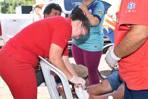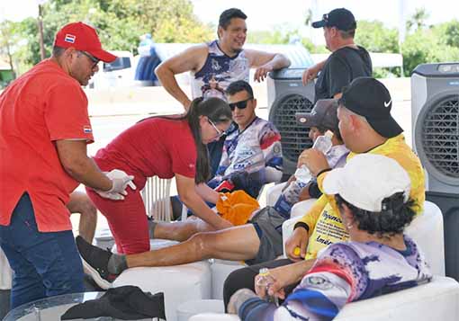 Siguió diciendo que los casos más frecuentes de atención fueron “los calambres, la deshidratación, insolación, dolores de cabeza, cefaleas, además de las ampollas en los miembros inferiores por el calor y la larga caminata. También repartimos agua bien fría, hicimos masaje a personas mayores para recuperar fuerzas”, sostuvo el profesional.
