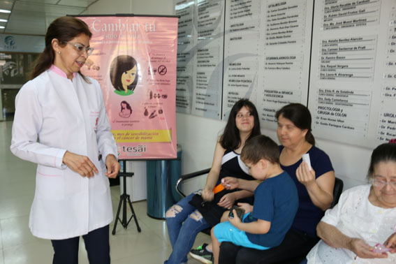 Diariamente se realizan recorridas por sectores, servicios y pasillos del Hospital a fin de concienciar a los pacientes, enfermos y familiares sobre los cuidados básicos y métodos de prevención de la enfermedad. Participan de estas acciones especialistas en mastología, ginecología, imagenólogos, ecografistas, técnicos y profesionales del servicio de Mamografía.