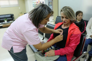 La campaña “Octubre Rosa” sigue sin pausa ni descanso, con talleres, charlas, distribución de trípticos informativos, tarjetas alusivas y colocación de afiches, además de la entrega de listones rosados a pacientes asegurados y usuarios en consultorio ambulatorio e internación.
