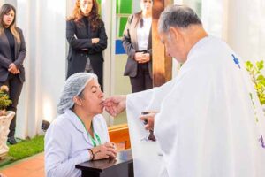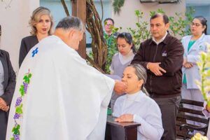“La Virgen nos inspira a cuidar de los enfermos, rezar por todos los sacerdotes, es un refugio espiritual para pedir fuerzas en momentos muy difíciles, pedir por la salud de los pacientes, de sus acompañantes y familias”, refirió la Lic. Vicenta Cáceres Delgadillo, integrante del equipo litúrgico.