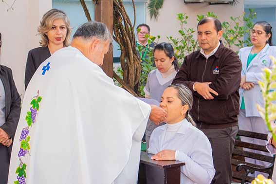 La feligresía católica conformada por funcionarios, médicos, personal de enfermería, pacientes, familiares, coordinadores de servicios, empleados de empresas tercerizadas del Hospital del Área 2, celebraron anticipadamente la fiesta religiosa en honor a la Virgen María Rosa Mística que se recuerda el 13 de julio.