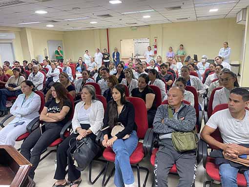 Esta jornada fue dirigida al personal médico, enfermeros, camilleros, laboratorios, kinesiólogos, con expedición de certificados a los asistentes. Subrayó que esta capacitación es el comienzo de un ciclo de talleres y jornadas con abordaje integral a todo lo que significa el manejo de pacientes, apuntando a un Hospital seguro desde el servicio de infectología y control de infecciones”, refirió finalmente.
