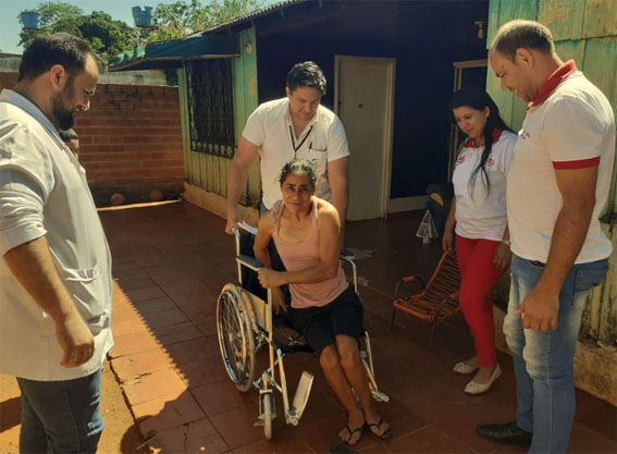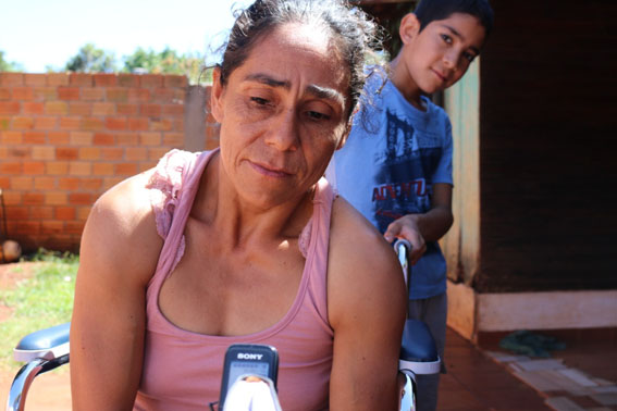 En otro sector del barrio Don Bosco de Ciudad del Este, la visita continuó en la vivienda de Miguelina Galeano Estigarribia de 42 años. La mujer no camina y como no disponía de una silla de ruedas debía arrastrarse por el suelo, con todas las dificultades que ello implica para su vida diaria. Tiene tres hijos, con pocos ingresos para mantener a su familia, sin un hombre como compañero y sostén del hogar, pero entregada de alma, corazón y vida a lo que ella llamó su “misión y vocación de madre”.