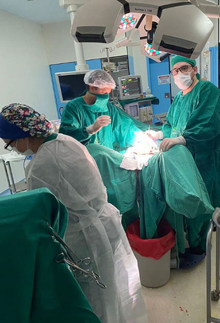 La primera cirugía se realizó a una paciente de 38 años de edad y consistió en una reconstrucción pélvica con neovejíga uretroplastía y restitución del tracto intestinal, anastomosis coloanal.