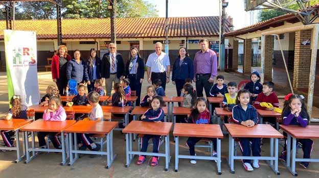 El intendente de Hernandarias, Nelson Cano, a través de los fondos de Fonacide hizo la entrega de sillas y mesas pedagógicas a la Escuela Básica N° 1.896 Nuestra Señora de Fátima, Escuela Básica N° 6.198 San Ignacio y Escuela Básica N° 4.816 Adela Speratti.