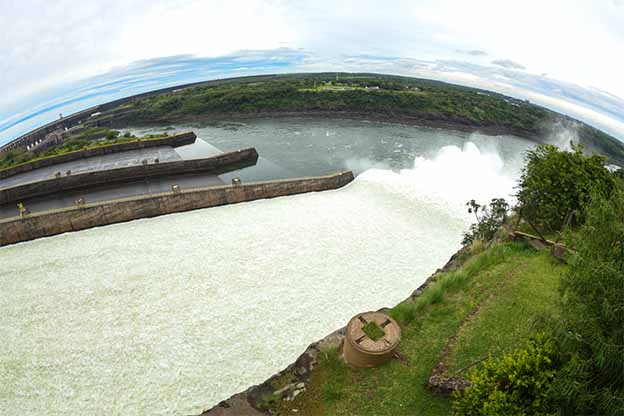 La parada en el mirador de la Margen Derecha, desde donde se puede contemplar el vertedero en todo su esplendor, forma parte del itinerario del recorrido técnico en la central hidroeléctrica y es una de las propuestas del Complejo Turístico Itaipú (CTI). Con la apertura de las compuertas se forma un cautivante paisaje que conjuga la fuerza de la naturaleza y el ingenio del ser humano.