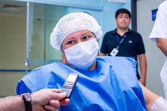 La paciente fue María Isabel Morínigo, madre y ama de casa, oriunda de la ciudad de Coronel Oviedo, 45 años de edad, con diagnóstico de colecistitis aguda (litiasis vesicular), quien se sometió a la cirugía programada con mucha tranquilidad, asegurando que se sentía “en buenas manos”. “Estoy emocionada y me siento bendecida, gracias a los doctores y las enfermeras. Me tratan con tanto cariño, tanto nos hacía falta este Hospital en Coronel Oviedo y hoy ya es una realidad”, sostuvo con la voz quebrada al momento de ingresar a quirófano.