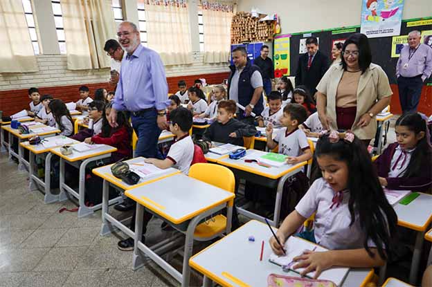 Destacaron especialmente la provisión de los modernos conjuntos de mobiliarios escolares, entregados recientemente por Itaipú a varias instituciones educativas del país. En ese marco, el titular paraguayo de la Binacional recorrió las aulas del CRECE que ya cuentan con los nuevos muebles pedagógicos. Igualmente, conversó con docentes y alumnos, quienes se mostraron contentos con las inversiones realizadas por el Gobierno en el plano educativo.
