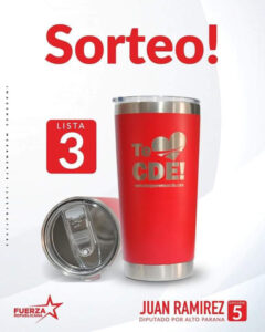 Juan Ramírez viene realizando sorteos de vasos térmicos de “Te Queremos CDE” entre sus seguidores de su cuenta oficial de Facebook: https://www.facebook.com/JuanRamirezDiputado