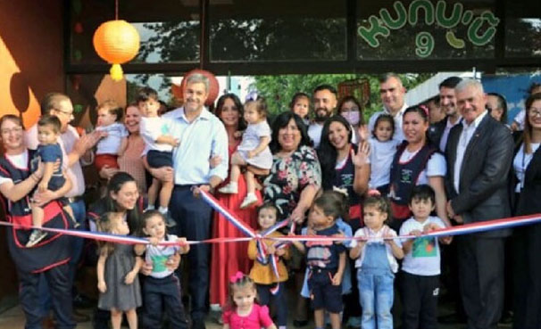 El primer mandatario y la primera dama arribaron en la tarde de este lunes a Hernandarias, y primero fueron a la escuela básica N° 1.295 Virgen del Rosario, del Área 6, donde participaron de la inauguración del Espacio de Desarrollo Infantil “Kunu’u 9″. Allí estuvieron acompañados por los ministros Teresa Martínez, de la Niñez y Nicolás Zárate, de Educación, además del intendente Nelson Cano.