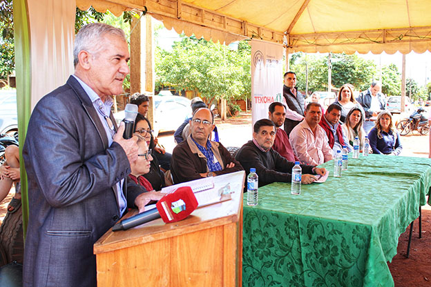 El acto especial lo encabezó el intendente, con la presencia del viceministro de Desarrollo Social, Dr. César Guerrero, el director del Programa Tekoha, Arq. Antonio Boselly y concejales municipales