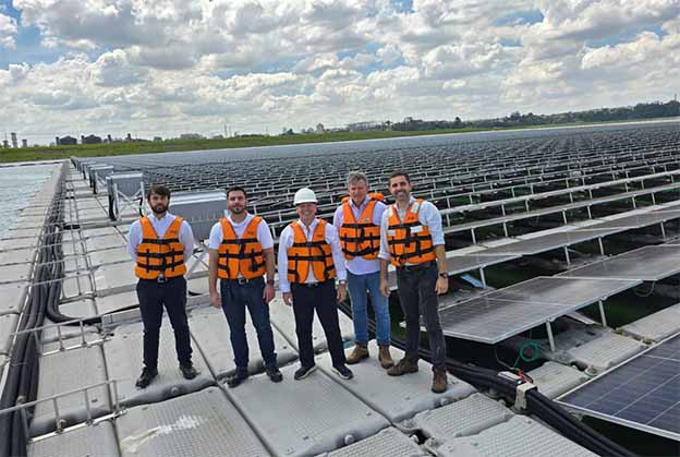 Técnicos de la Asesoría de Energías Renovables de Itaipú, Margen Derecha, visitaron la usina fotovoltaica flotante ubicada en el embalse de la represa Billings, en el estado de São Paulo, Brasil. Se trata de la mayor planta solar flotante de América Latina, de 7 megavatios de potencia instalada y con una superficie de 5 hectáreas (50.000 m2).