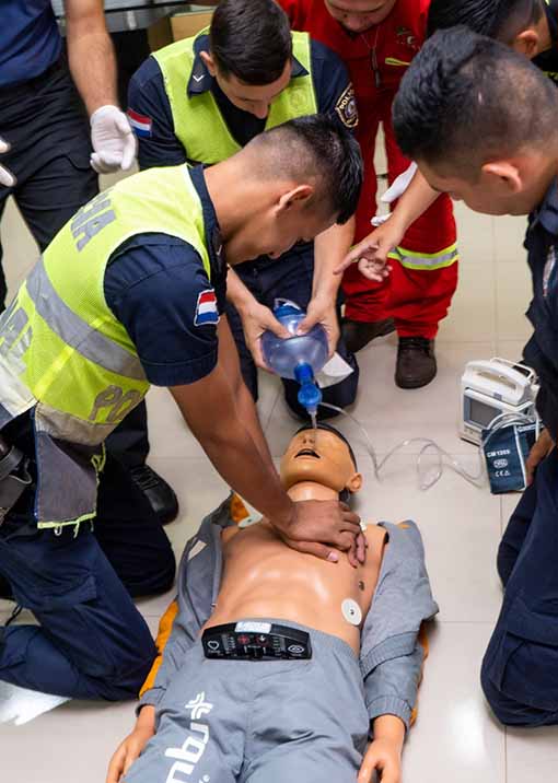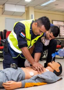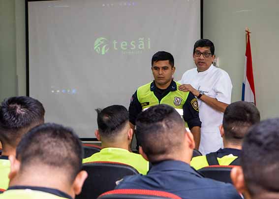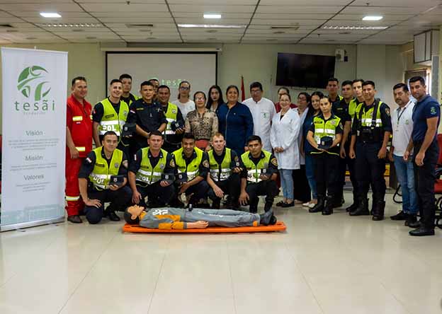 El Gobierno Nacional y la Fundación Tesãi, eje social de la Itaipú Binacional pusieron en marcha el ciclo de talleres de capacitación en simulacros de salvataje, evacuación de edificios, soporte vital avanzado y reanimación cardiopulmonar dirigido a efectivos de la Policía Nacional en el Alto Paraná. Todo en el marco del convenio de cooperación interinstitucional para el fortalecimiento de la capacidad de respuesta en accidentes, siniestros, incendios y evacuación.
