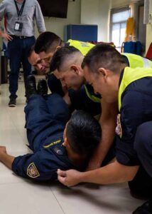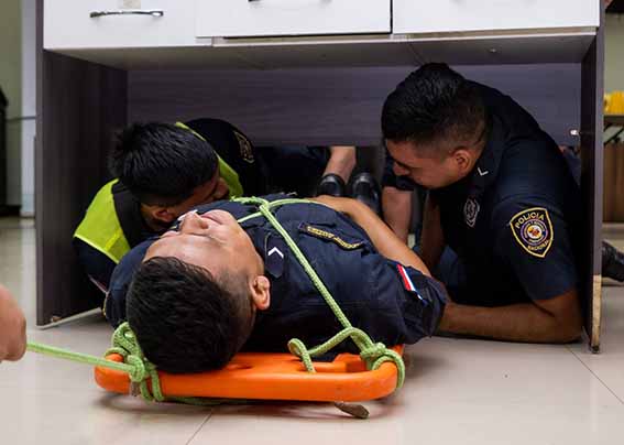 El entrenamiento consistió en el aprendizaje de técnicas para el manejo de pacientes traumatizados y de inmovilizadores, además de la alineación y rotación del cuerpo humano, manejo de tabla de transferencia, manejo de collares cervicales, tabla rígida, extricación de pacientes, atragantamientos, uso de extintores, protocolos de evacuación de edificios, derrumbes, siniestros, catástrofes, reanimación cardiopulmonar, entre otros.