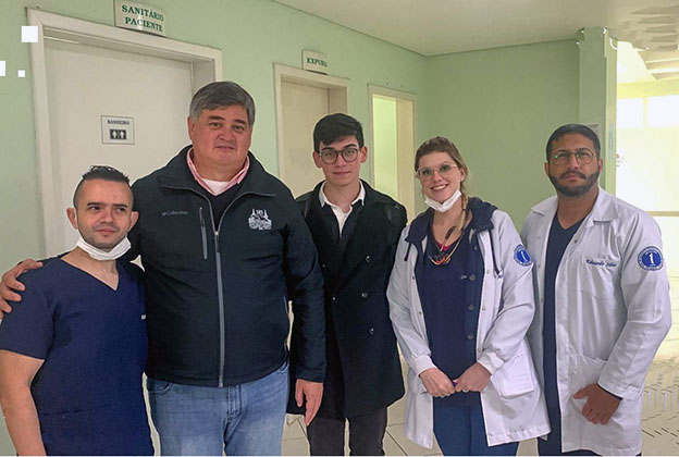 Formaron parte de la comitiva de la UPE, Presidente Franco, el Dr. Héctor Arnella, decano de la Facultad de Ciencias Médicas “Prof. Dr. Manuel Riveros”, Alejandro González Soria, de la dirección Administrativa, Dra. Lourdes Riveros, directora Académica y Leticia Guimaraes, encargada de Internos, que visitaron las instalaciones del centro hospitalario y a los alumnos internos de la carrera de Medicina de dicha ciudad brasileña.