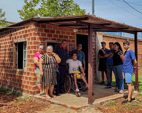 Bajo la coordinación de Pedro González, funcionario de la UPE, sede Presidente Franco, vecinos del barrio San Sebastián unieron esfuerzos para construir una pequeña vivienda de material cocido para el señor Nicolás Mora, quien ha sufrido una pérdida de la función de los miembros inferiores a causa de un accidente. El mismo agradeció emocionado el gesto humanitario de su hermana y vecinos.