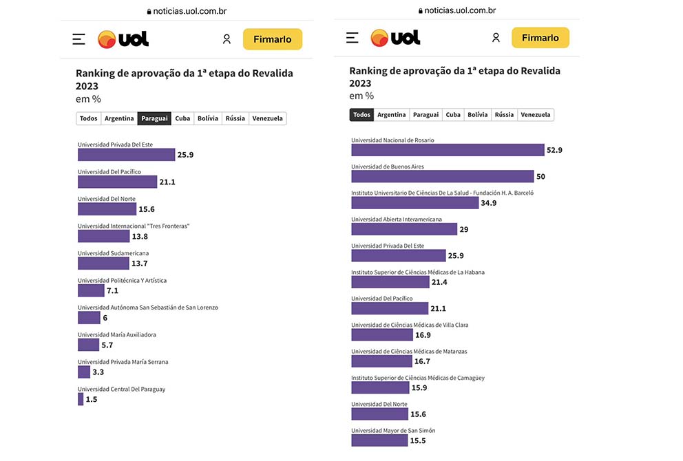 Entre las 10 universidades paraguayas de las que nuevos médicos van al Brasil para ejercer la profesión, los de la UPE superan a todos. Estos datos surgen de una medición realizada y publicada este 15 de agosto por Carlos Madeira, columnista de la UOL, reconocida empresa brasileña (medio de comunicación) de contenidos en todas las áreas y de servicios digitales.